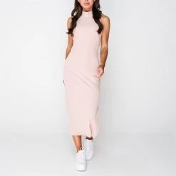 Fabric Brushed Soft Rib Slit Detail Midi Dress