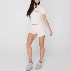 Fabric Waffle Cotton Frilly Shorts Pyjama Set with Relax Slogan