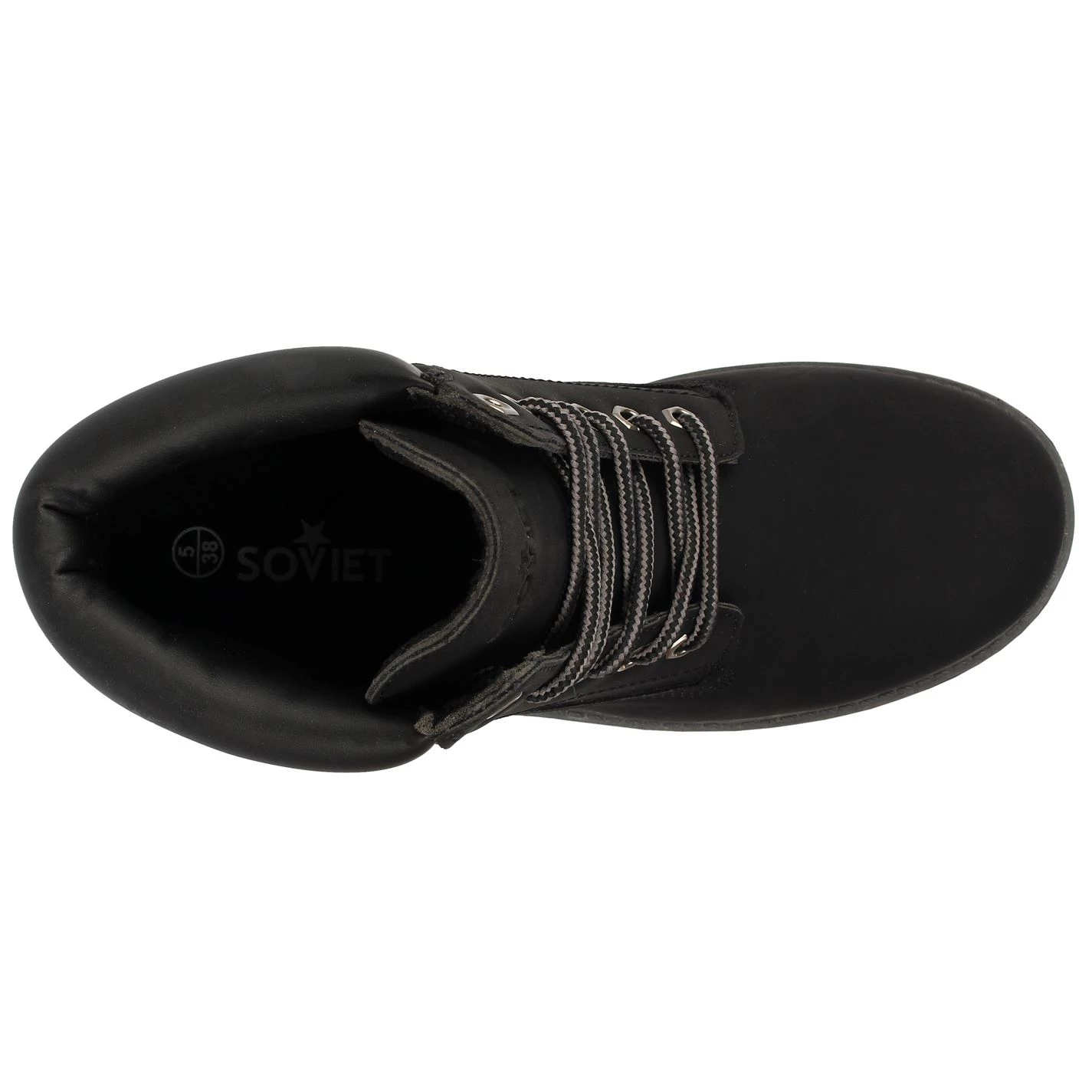 The Kids Soviet Joss Boots is a great addition to a casual wardrobe, crafted with a padded mid cut ankle collar and lace fastening for a secure fit coupled with a cushioned insole and moulded outsole for a comfortable ride, completed with stitched detail to the upper and the Soviet branding.
