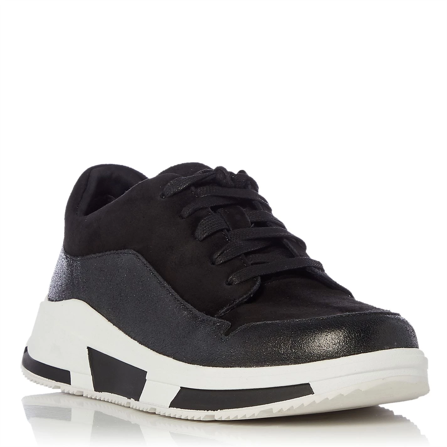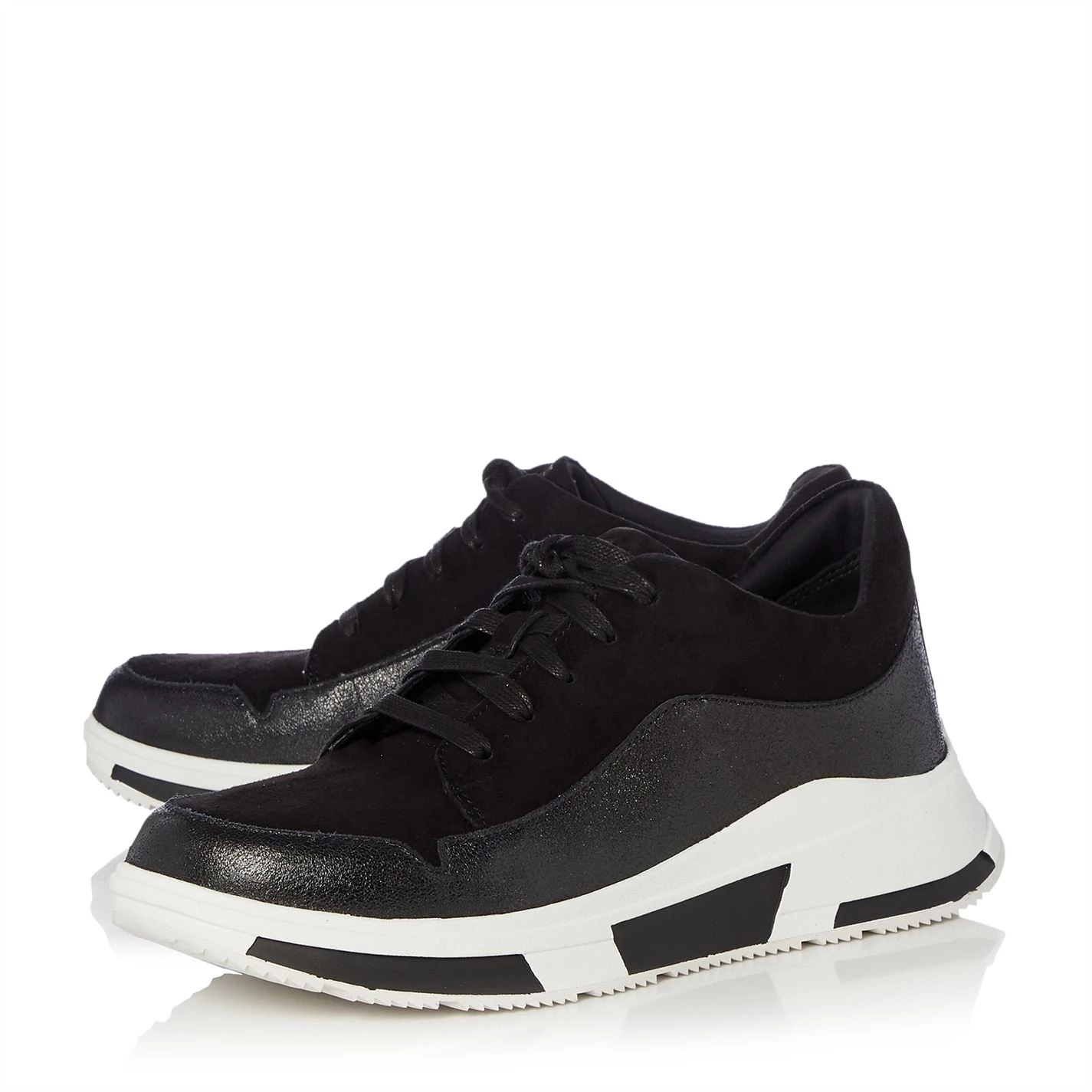 Update your everyday footwear selection with the Fitflop Freya Suede Trainers. Designed with a suede upper, these trainers feature a classic lace up system and a chunky contrast sole. The Microwobbleboard midsole delivers optimum all-day comfort with the curved panel detailing and Fitflop branding completing the look.
