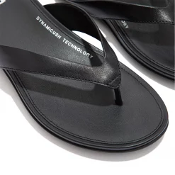 Improve your poolside attire with the Fitflop Gracie Flip Flops. Crafted on top of an anatomically contoured footbed that gives natural support with high rebound Dynamicush cushioning, the upper section is designed with slinky minimal straps and finished with the Fitflop branding for a premium look.