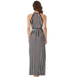 Go from the beach to bar in this maxi style long dress with high neck styling and a skinny belt tie at waist. Made in a lovely soft handle fabric.