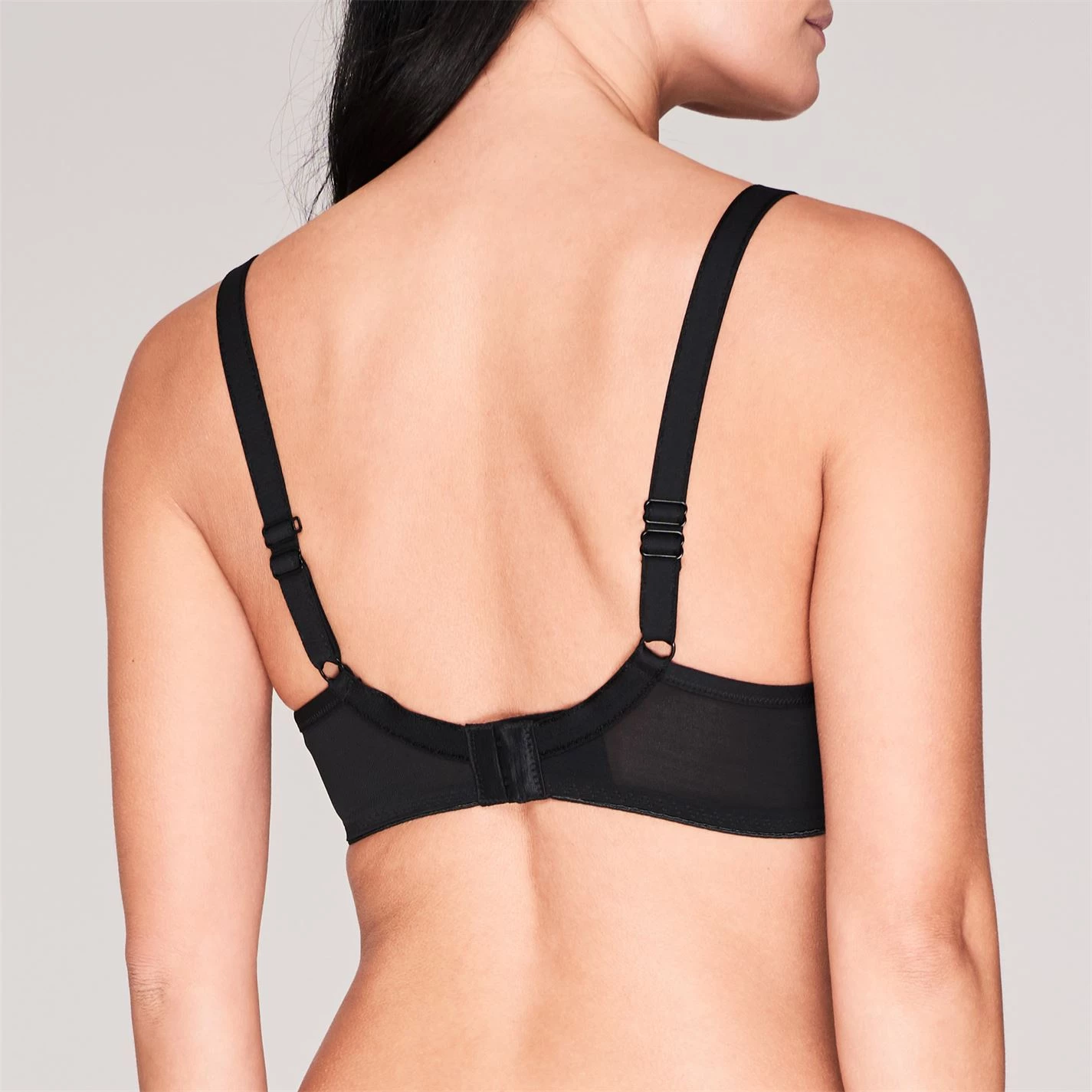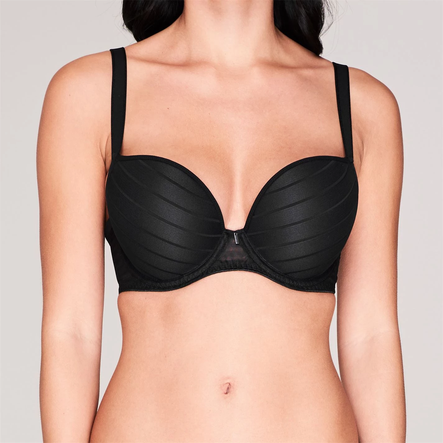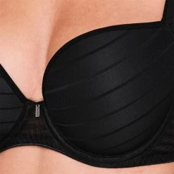 A T-shirt bra with a twist. Based on the Deco shape, cameo features smooth cups which enhances your shape in a low revealing neckline and centre front for the ultimate plunge shape. Overlaid with a striped mesh lace which is smooth under T shirts. A versatile style which has a J Hook feature which allows the bra to be converted into a racer back.