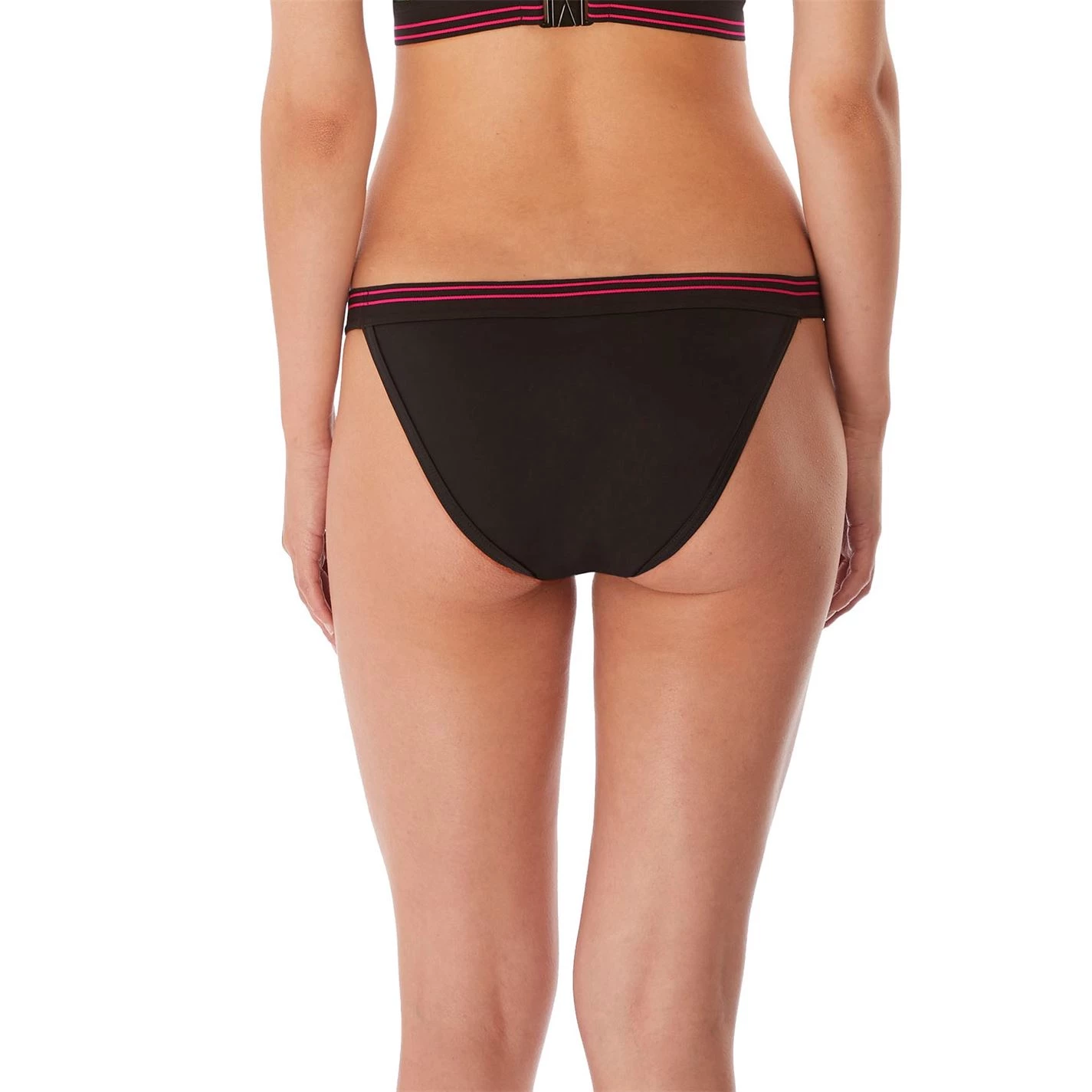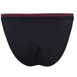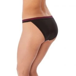 An athleisure inspired collection which is inspired by traditional English gardens, the trailing blooms feature a mix of oranges, subtle blush tones and leafy greens on a black ground. This brief sits low on the hips and gives skimpy bottom coverage and is framed with an on-trend contrast black binding. The wide elastic trim at waistband gives it a sporty finish.