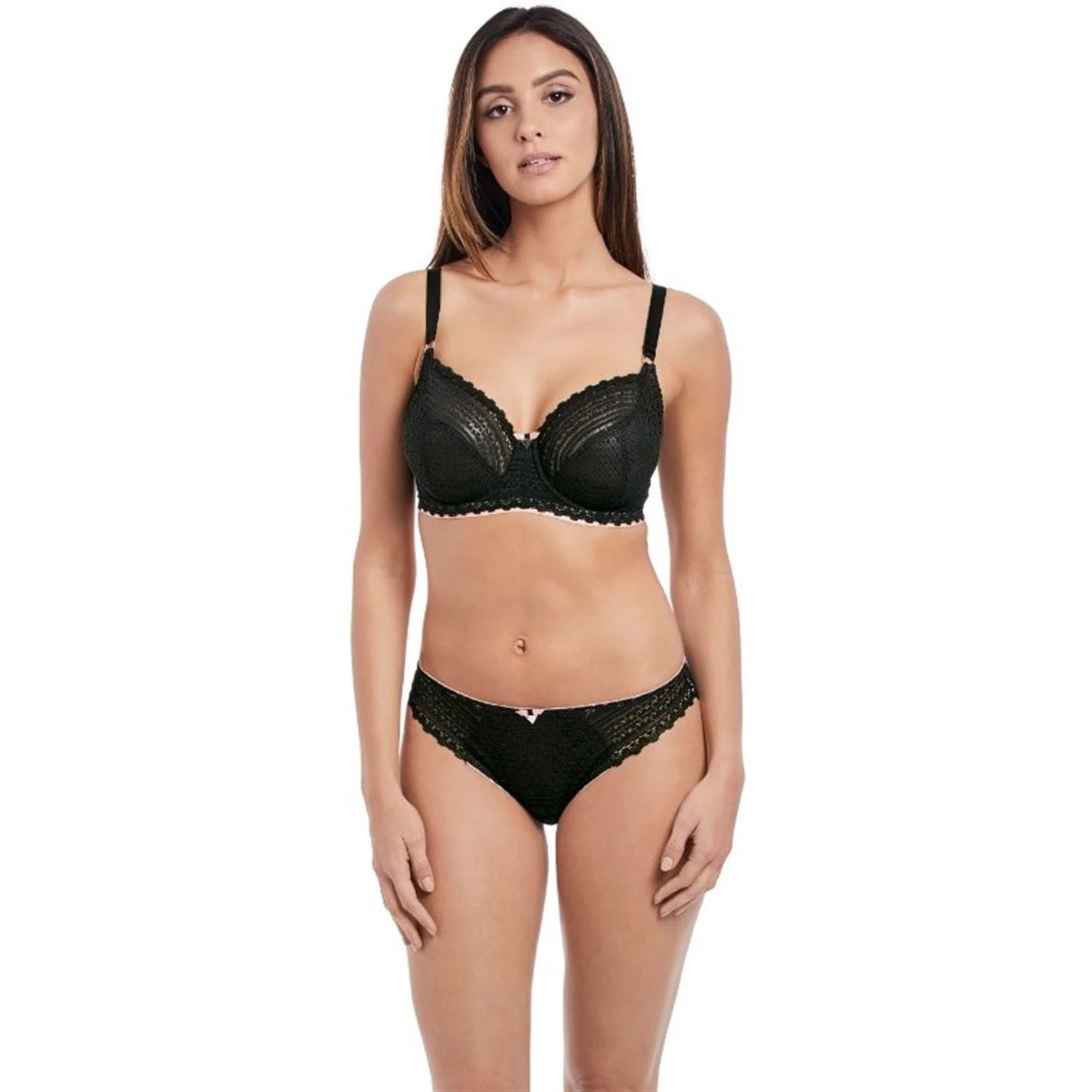 An ideal starting points for all outfits, this underwire balcony bra by Freya is truly stylish. Made from a soft and stretchy fabric, it features fully adjustable straps, three-section cups and a low centre front for comfortable wear. Adorned with a decorative elastic trim at the underband and a silver ring detail at the centre to lend a modern touch, this non-padded bra is complete with hook-eye fastening at the back to ensure a perfect fit. Team this bra with matching briefs to achieve a coordinating set.
