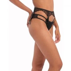 Temptress is a collection that is worn to be seen. A contemporary geometric lace accents all pieces for a flirty, feminine look. The all-over stretch lace Suspender is narrower at the waist for a lighter look. Soft foldover elastic at the waistband provides comfort. The suspender has a hook and eye fastening and adjustable suspender straps with gold sliders.