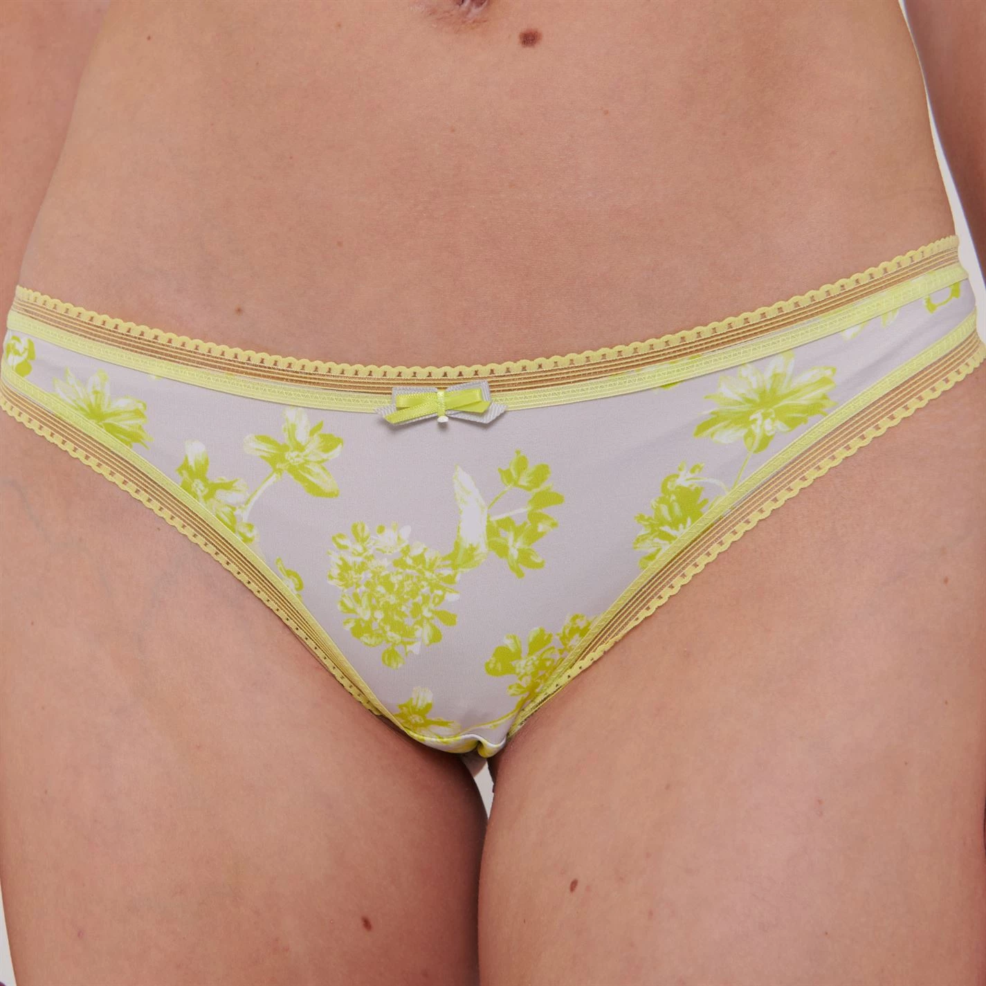 Enliven your lingerie look with this electrifying lime coloured underwear with lime floral printing and contrast lime lace trims around the edges.