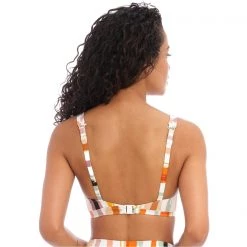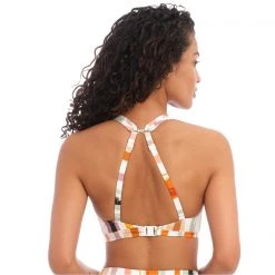 Reflecting all the colours of the sunset spectrum, Shell Island features a painterly abstract stripe design. The Underwire High Apex Bikini Top has a sexy low plunging neckline with elongated apex. Powernet lined cups for shaping and support. The bikini top also has this added J-hook feature which allows you to convert the style into a racer back style.