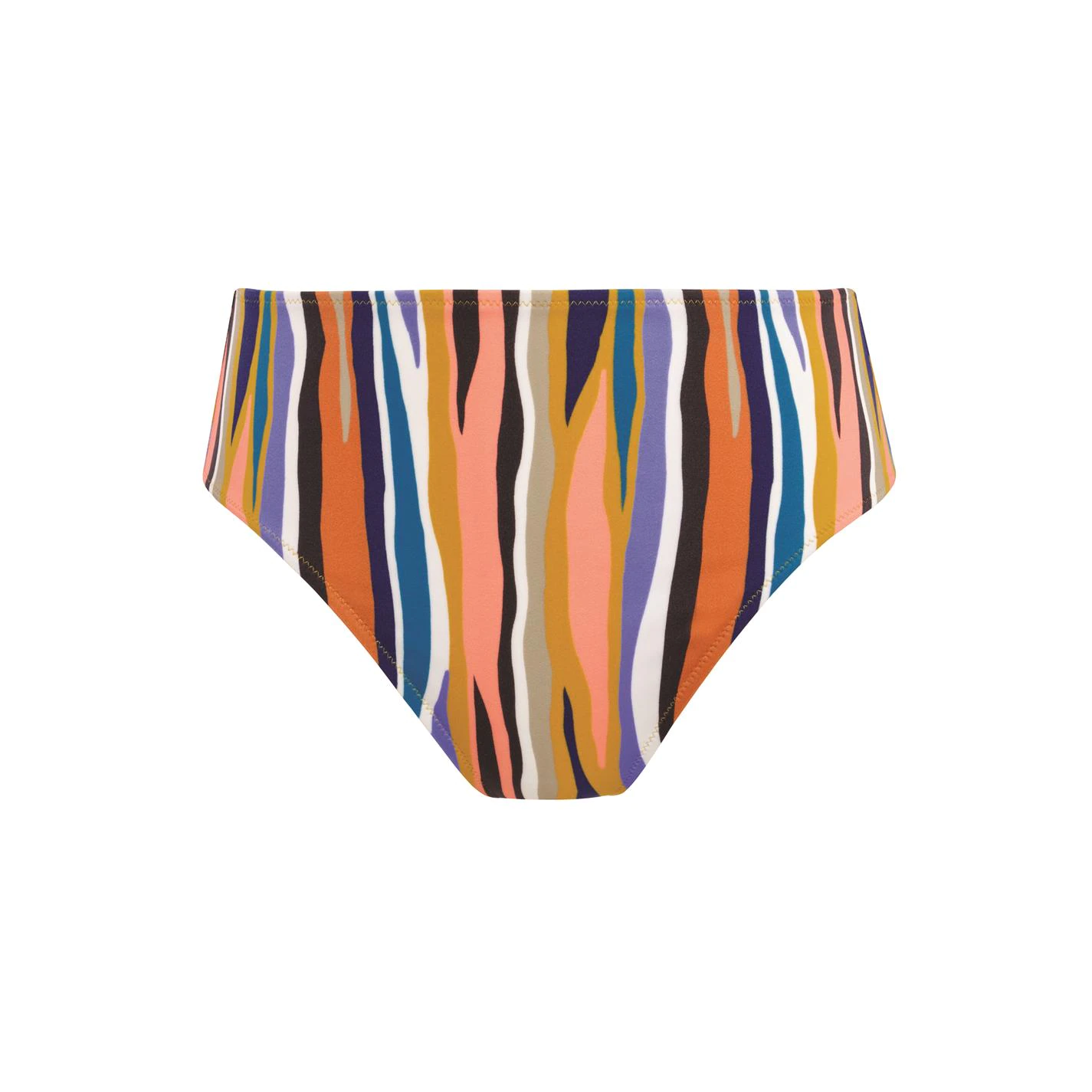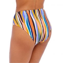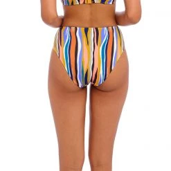 Inspired from the much loved Bali Bay, Torra Bay offers an abstract animal print design in earthy tones with a pop of azure blue. The High Waist Bikini Brief sits high on the waist with a scoop leg line and offers medium bottom coverage.