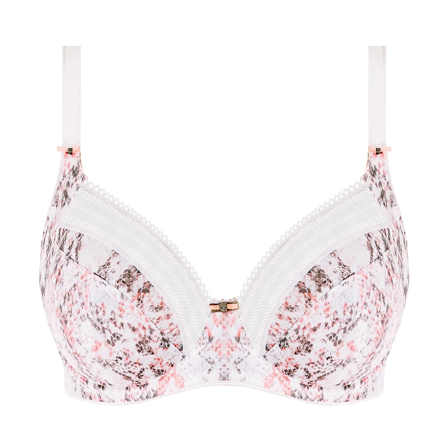 Update your underwear collection with this Freya Viva Side Support Bra. Constructed from a soft handle fabric for lasting comfort, this bra is crafted with a 4-piece cup with side support for great uplift and forward projection. This style features fixed adjustable straps to prevent slippage and a powernet wing for lasting support. Boasting decorate stretch elastic to the neckline and bow detailing, the piece is finished in a contemporary animal print design.
